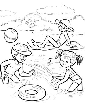 На берегу ребята принимают солнечные ванны, в это время можно устроить конкурс на лучшую фигуру из песка или поиграть в пляжный волейбол, бадминтон, разучить новую песню. Каждый раз контролируйте, чтобы дети выходили на пляж в головных уборах.