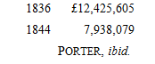 Such have been the effects of free-trade principles on the comparative prosperity of British and foreign shipping, on the showing of the Free-traders themselves, and according to the figures which their great statistician, Mr Porter, has prepared and published at the Board of Trade. We were unwilling to mix up a great national question, such as the repeal of the Navigation Laws, with any subordinate examination as to the accuracy or inaccuracy of the view of our maritime affairs which these figures exhibit. Such is the strength of the case, that it will admit of almost any concession; and the opponents of their repeal have no occasion to go farther than to the statistics of their adversaries for the most decisive refutation of their principles. But there are two observations on the tables published by the Board of Trade, so important that they cannot be passed over in silence. The first is, that in 1834, when Mr Poulett Thomson was president of the Board of Trade, a regulation was made by the Board as to the measurement of vessels, which had the effect of adding a fifth to the apparent tonnage of all British vessels, subsequent to that date. This change was clearly proved by the witnesses examined before the Commons' committee; but though Mr Porter, in his last edition of the Progress of the Nation, mentions the change, (p. 368,) he makes no allusion to it in comparing the amount of British and foreign tonnage since 1834. Of course a fifth must be deducted from British tonnage, as compared with foreign, since that time; and what overwhelming force does this give to the facts, already strong, in regard to the effect of the reciprocity system on our maritime interests!