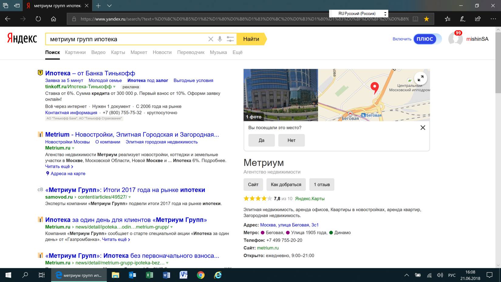 Вот еще пример, с прямым отношением к бизнесу. Результат поиска на фразу «метриум групп ипотека».