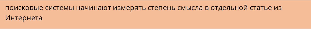 Точно также, как мы, прочитав две статьи, можем всегда высказать свое мнение, к примеру, «эта статья более интересная, более умная, более осмысленная, более полезная», точно также и роботы-поисковики могут теперь сравнивать статьи по «смыслу», причем, результат от робота будет все чаще совпадать с оценкой от экспертов.