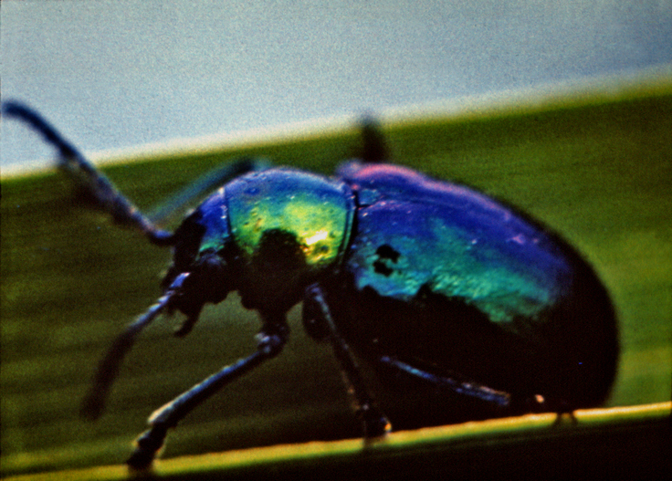 жука-листоеда, как бы целиком отлитого из зеленого металла.