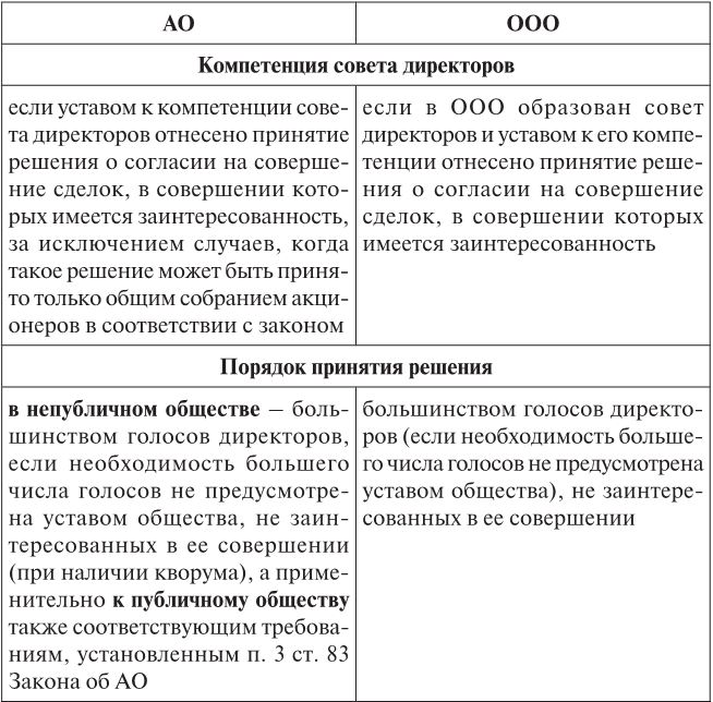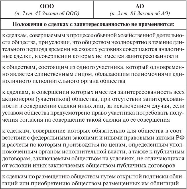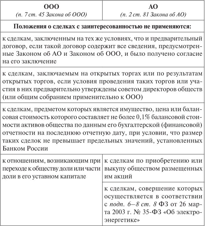 Отмечу, что в законодательстве о других организационно-правовых формах юридических лиц также имеются положения о крупных сделках и сделках, в совершении которых имеется заинтересованность, например: Федеральный закон от 8 декабря 1995 г. № 193-ФЗ «О сельскохозяйственной кооперации» (подп. 3–7 ст. 38), Федеральный закон от 12 января 1996 г. № 7-ФЗ «О некоммерческих организациях» (ст. 27), Федеральный закон от 14 ноября 2002 г. № 161-ФЗ «О государственных и муниципальных унитарных предприятиях» (ст. 22, 23), Федеральный закон от 3 ноября 2006 г. № 174-ФЗ «Об автономных учреждениях» (ст. 15–17).