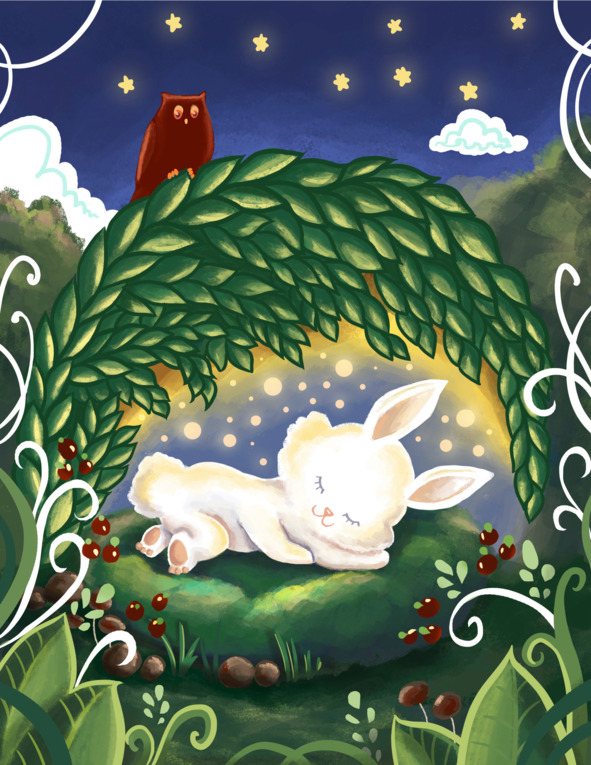 Во лесочке, во лесочке, во густом.Спит Зайчишка, спит Зайчишка под кустом.Месяц выплывает, звезды зажигает.Не березка, не осинка не дубок,А зеленый там ракитовый кусток.Снится Зайке поле, где Ветер пляшет вольный.