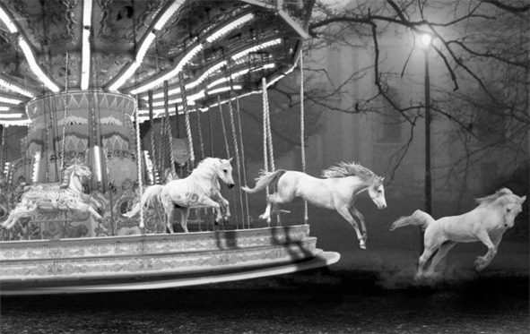 Бегут по кругу деревянные лошадки,Истерлись краски – это не беда,Как горсти леденцов, из детства сладких,Вы в памяти моей – счастливая пора.Бегут лошадки, годы пролетают,Не в силах мы замедлить их галоп,Прокатимся? Как будто приглашают,Обратно в детство и восторга вопль.Волшебники Пегасы, Ваши крылья,Сдувают пыль с утерянных чудес,Взмываем в небо, словно эскадрилья,В полёте с вами – снова я воскрес.