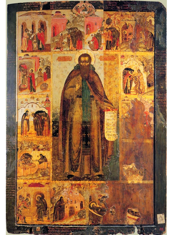 Преподобный Феодосий Печерский с житием в 14 клеймах (икона XVII век)