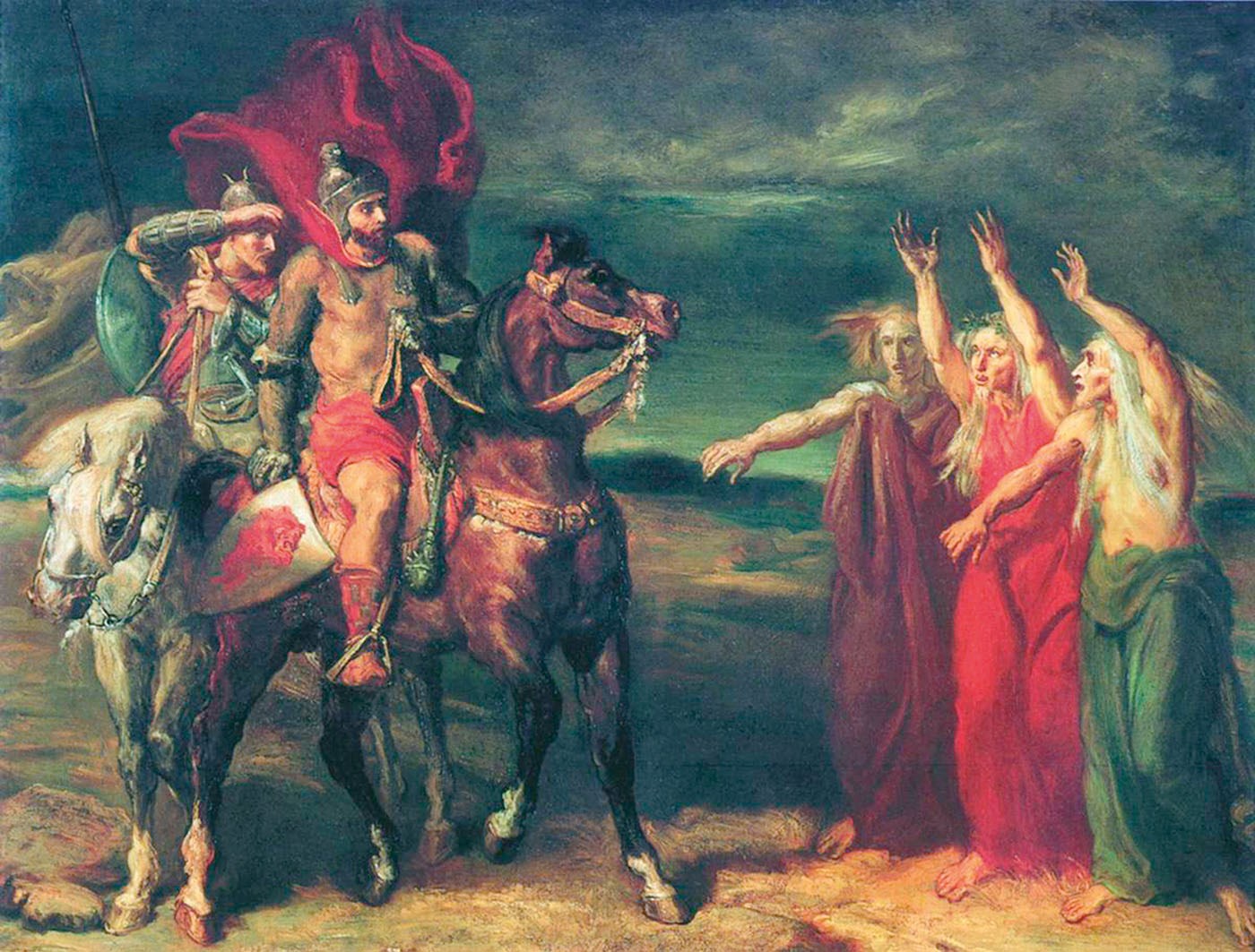 После всех этих событий Макбет и Банко, опередив свои войска, вдвоем поскакали к королю Дункану. Они ехали через дикую пустошь и вдруг встретили трех старух в одежде из лохмотьев, с растрепанными волосами и с мужскими бородами.