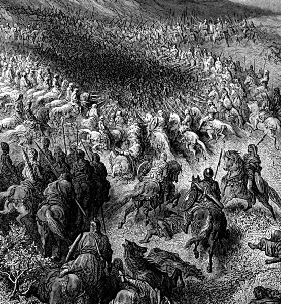 Армия Саладина окружила войско крестоносцев. Гравюра на дереве Густава Доре