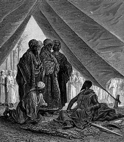 Мусульманские эмиры беседуют с предводителем крестоносцев. Гравюра на дереве Густава Доре