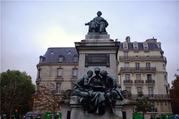 Рядом с метро высился красивый памятник. На вершине восседал знаменитый писатель, застывший в ироничной улыбке, внизу с одной стороны расположились читатели, приникшие к книгам Дюма, а с другой – его главный любимец – месье шевалье Д'Артаньян.
