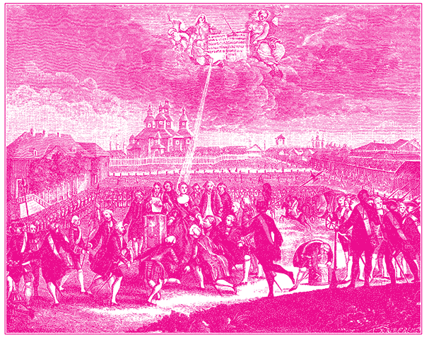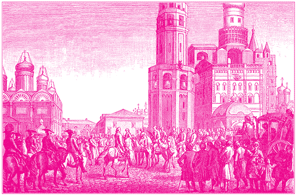 Коронование Екатерины II. Объявление глашатаями народу о торжестве коронования.
