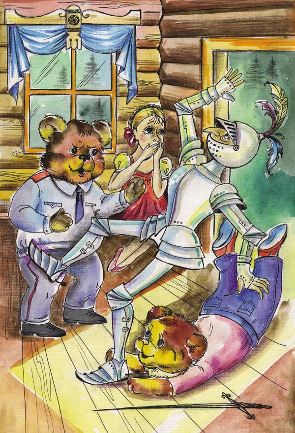 Шли вы бабушку искать,Мол, яга – старушка!Оказалось всё не так —Я вредная девчушка!Сбитый с толку медведь совсем растерялся.
