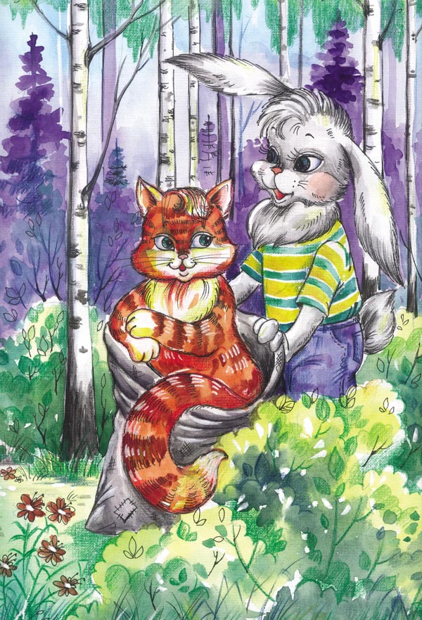 * * *А Хвостик продолжал носиться по лесу в поисках кошки. Та и вправду гуляла где хотела и как хотела. Зайчишка стал расспрашивать всех встречных подряд. Результат нулевой. Многие её видели, но никто не знал, куда она потом делась. Сколько бы ещё продолжались поиски, неведомо, но тут зайка наткнулся на своего знакомого, старого Лешего.