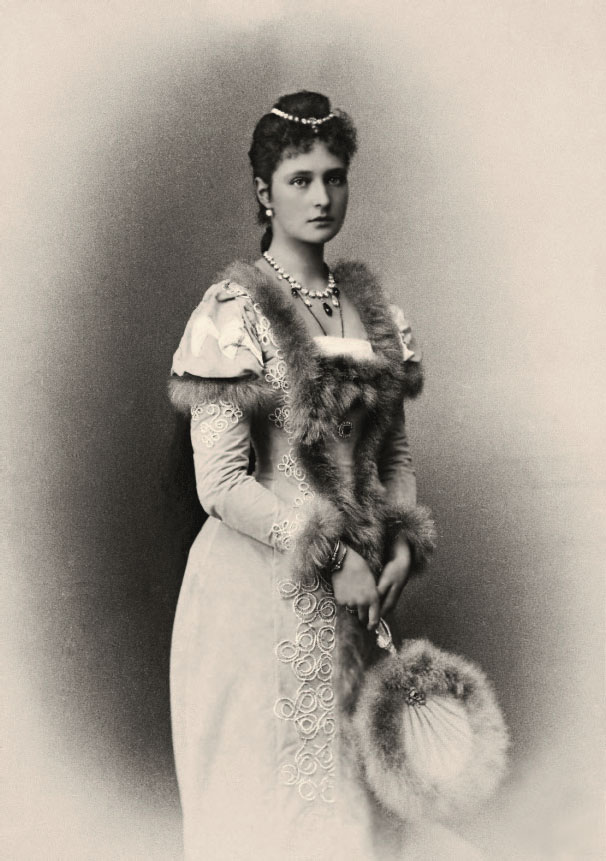 Еще маленькой девочкой в 1884 году императрица приезжала в Петербург на свадьбу своей сестры, великой княгини Елизаветы Федоровны. Она тогда очень подружилась с сестрой государя, маленькой великой княжной Ксенией Александровной, а также с малолетним наследником Николаем Александровичем, который подарил ей маленькую брошку. Сперва она приняла ее, но после решила в своей детской головке, что подарка принимать нельзя. Но как вернуть, чтобы его не обидеть? И вот на детском балу в Аничковом дворце она потихоньку сунула брошку в его руку. Он был очень огорчен и подарил эту брошку своей сестре. С годами увлечение их росло, но государыня боролась со своими чувствами, боясь сделать неправильный шаг в отношении своей религии. Когда женился брат, и ей казалось, что после смерти отца, которого она обожала, ей больше уже нечего делать дома, чувство к государю все перебороло, и счастью их не было границ. Они вместе были на свадьбе брата в Кобурге; потом государь заезжал к ней в Англию, где она гостила у королевы Виктории.