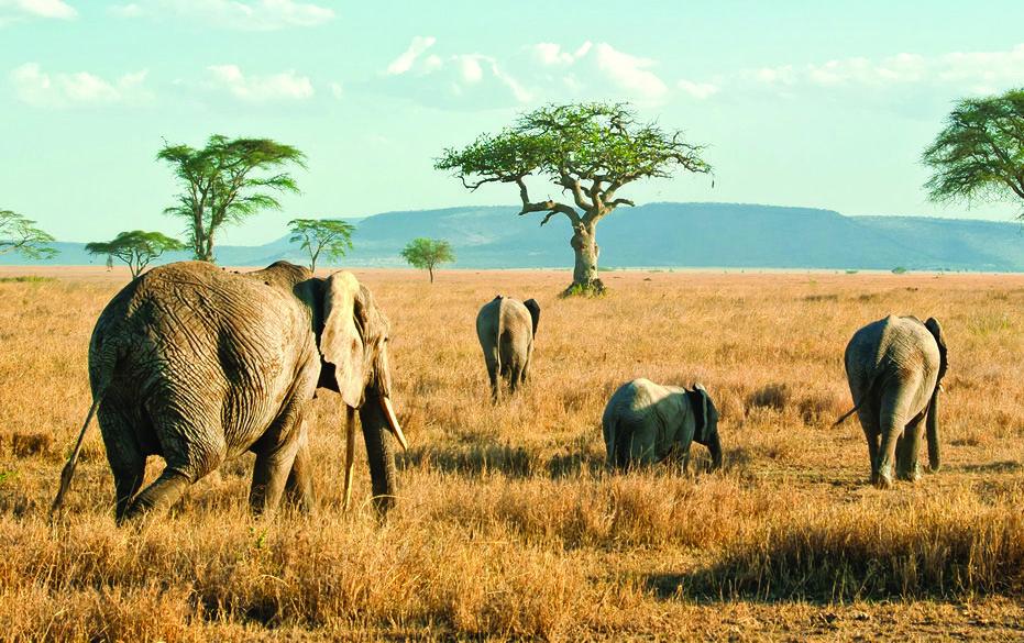 Танзания славится своими знаменитыми заповедными местами. Главной туристической достопримечательностью страны является Национальный парк Серенгети. Он был основан в 1951 году и занимает площадь 14,8 тысяч кв. км. Это единственный в мире национальный парк, где происходят естественные сезонные миграции диких животных. Пики миграции приходятся на периоды с мая по июль и с января по март. Газели, зебры и антилопы гну в поисках еды и воды продвигаются на 800 км по всей территории парка и за ее пределы, за ними идут и хищники. В Серенгети обитают 35 видов млекопитающих, среди которых слоны, буйволы, леопарды, львы, жирафы, носороги, антилопы и зебры. Местные ландшафты меняются от невысоких травяных сообществ на юге парка до высокотравных саванн в центре и лесных массивов на севере. В Серенгети расположены озера Лагая и Магади, где на берегах можно увидеть стаи фламинго.