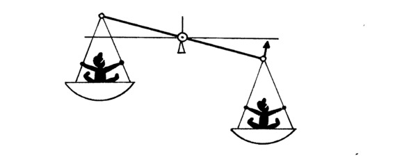 Если раньше мерой всех вещей был сам человек, то «закон весов» и на мир сделали возможным определять любые противоположности относительно ориентиров, лежащих вне человеческого организма. И хотя за всем этим продолжала наблюдать мифическая богиня, а у наследников Авраама сам Всесильный Творец, тем не менее, исследование противоположных начал вступило в новую фазу. Первобытное разумное мышление, находясь в неразрывной связи с языком, было уже невозможно без обобщений, без стремления во всем найти такие объективные закономерности, которым подчиняются как те или иные частные явления, так и более широкие и более удаленные от человека области действительности. А это, было возможным только с определенных объективных ориентиров: 1) с точки зрения крайних позиций или 2) с точки зрения промежуточного. Но в любом случае на основе понимания объективного закона весов. понятие промежуточного как определенной точки зрения