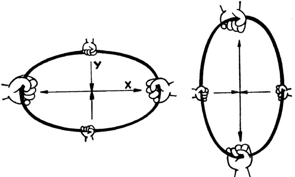 И хотя древние прекрасно видели, что растягивание лука в средней части неизбежно вызывает его вертикальное сжатие, они, тем не менее, не могли понять причину обменов в природе и обществе как отношение двух пар противоположностей, смещенных относительно друг друга по времени на четверть периода. Да что там древние, возьмите иного нашего современника, кандидата или даже доктора философии, и он решительно не сможет понять, о каких, в сущности, отношениях идет речь.
