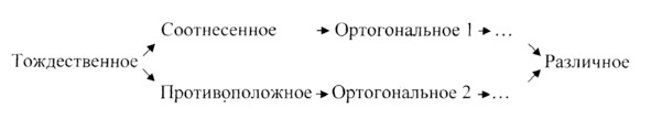 Итак, отношения противоположностей послужили древнегреческим натурфилософам в качестве основания для самых широких обобщений. Однако все эти мыслители за исключением Гераклита, так и не сумели убедительно показать взаимосвязь между процессами уничтожения и возникновения, компенсации и декомпенсации, обусловленных каббалистическим «законом сдвоенных весов». Гераклит же продумал эту связь во всех аспектах бытия, начиная с гармонии лука и лиры, и кончая осмыслением социальных ритмов – обменом товаров. При этом его мышление пополнилось новым сравнительным понятием – «сходящееся-расходящееся», которое в данной работе мы называем «ортогональное» и которое в общей схеме сравнительных понятий мы располагаем вслед за понятиями «соотнесенное» и «противоположное».