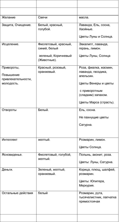 Втирая в Свечу масло, представляйте, что она впитывает вместе с маслом и ваше желание. Верьте в то, что вы делаете, и у вас все получится. Вера очень важна в магии!