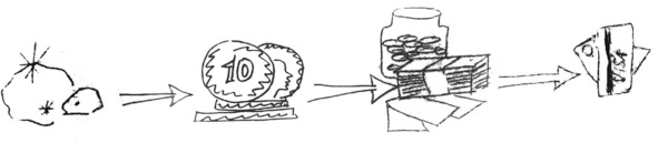 В мировой истории денег считается, что изначально деньги появились, как возможность обменять излишек продуктов и/или специально изготовленных вещей в домохозяйстве на нечто другое.