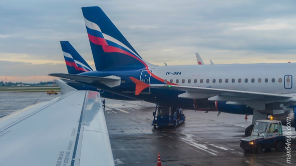 В иллюминаторах красавцы Эйрбасы Аэрофлота.