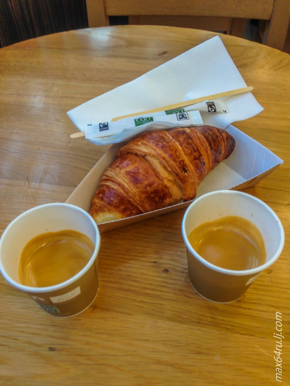 Как вы думаете, что можно поесть в парижском аэропорту на 8 евро? Правильно думаете – круассан и кофе, даже два (просил дабл эспресс))