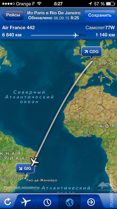 Тем временем по данным проги FlightTrack наш вернувшийся рейс почти долетел до РИО!!!!