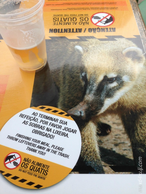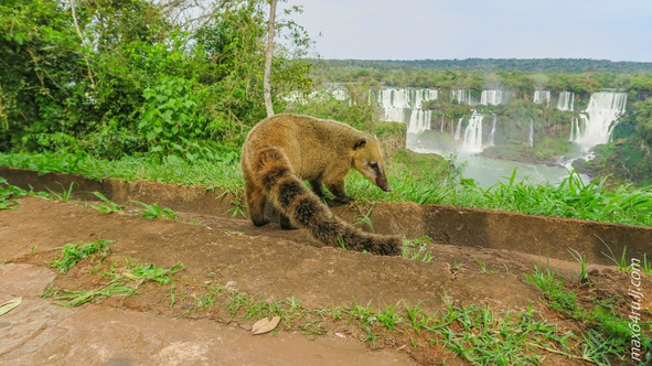 Ранее мы не видели их на бразильской стороне. Видимо иммигрировали из Аргентины. Совсем не бояться людей и нагло попрошайничают! Повсюду таблички с запретом о кормлении.
