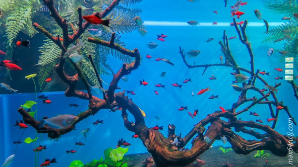 Также большое внимание уделено аквариумным рыбкам. Меченосцы и неоны.