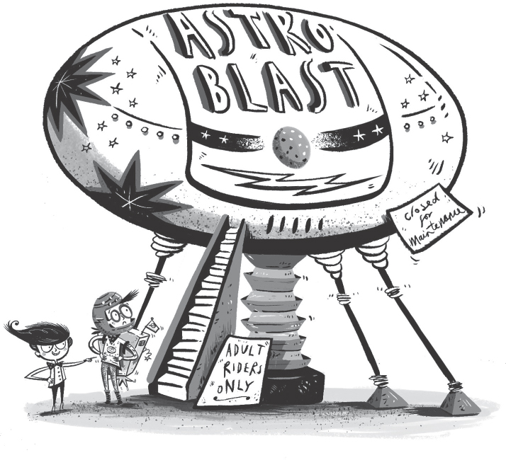 I turned and looked at Zoe, Bernard and Regina. I shot my hand up towards the sky like a rocket. ‘For the universe!’ I declared and then, before I could change my mind, I ran as fast as I could towards The Astro Blast Simulator.