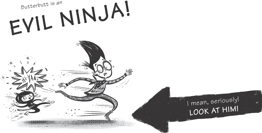 It was almost a clean escape. But then my little sister Lucy came into the kitchen just as I was putting the rice in my backpack. She was holding Butterbutt (who was looking especially evil).