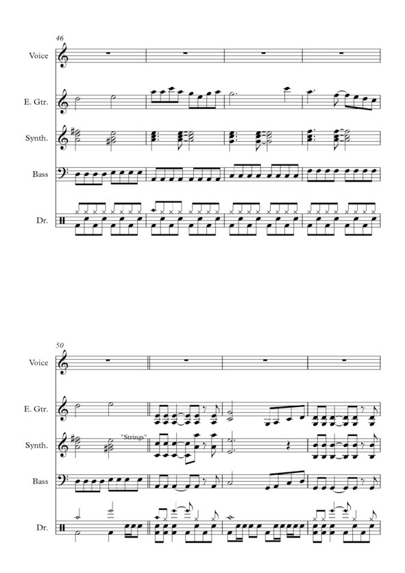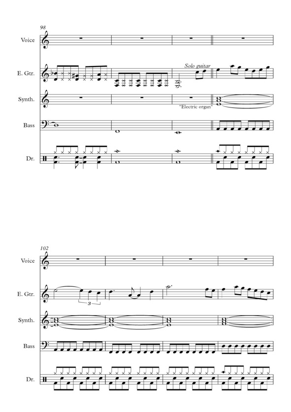 Нотные тексты достаточно просты и удобны для чтения «с листа», причём автор намеренно не указал штрихи, динамику и нюансировку в партитурах, полностью полагаясь на музыкальный вкус исполнителей. В техническом плане, электрогитара и бас-гитара должны быть оснащены процессорами. В партиях синтезатора также есть указания на тембральные характеристики.