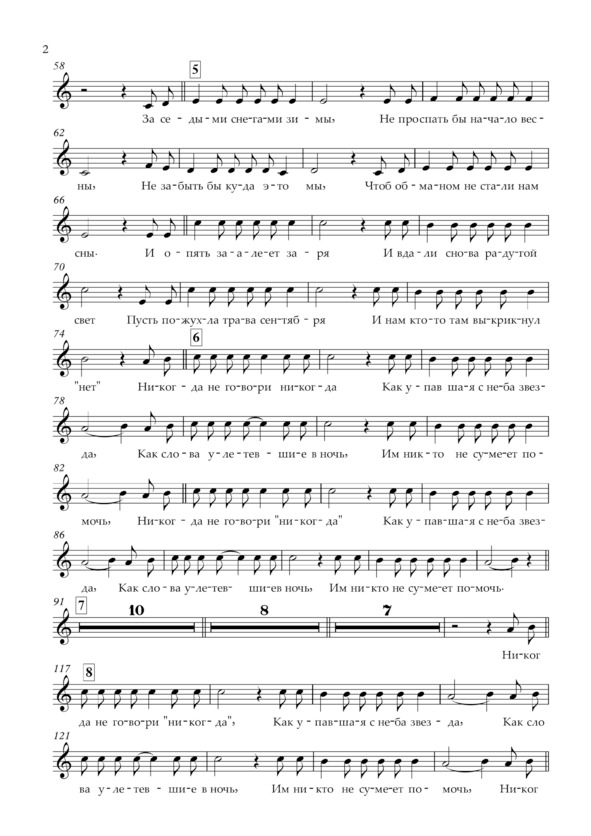 Вокальная партия и текст «Никогда не говори „никогда“»