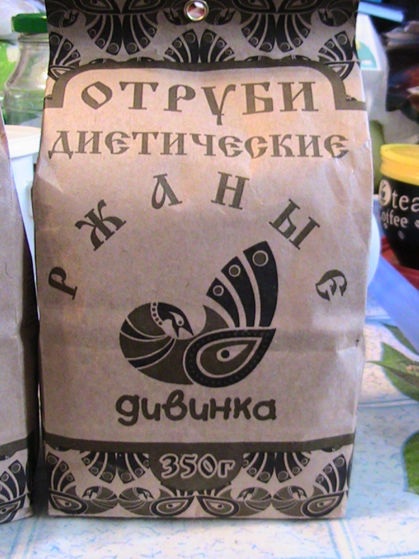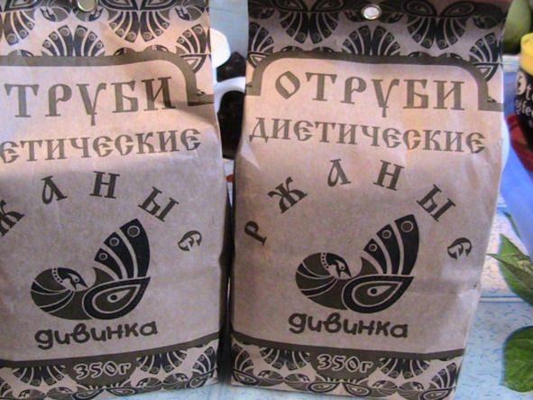 «Вот в такой вот оригинальной и удобной упаковке! Ешь с отрубями обоих видов -на выбор и вкус (или с обоими видами сразу, одновременно), прям чайной ложкой черпай их из упаковки и „заедай“ ими ВСЕ ранее привычные блюда: паштет вприкуску с ними, ешь суп и т. д.»