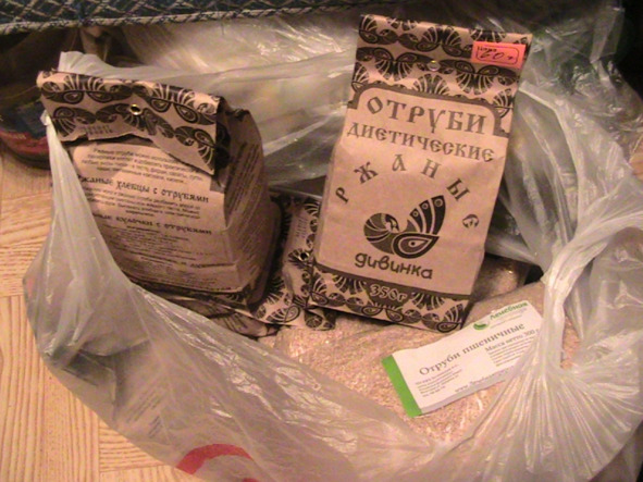 «Да, чуть не забыл самое главное: где продаются отруби. Как правило – в СПЕЦИАЛИЗИРОВАННЫХ МАГАЗИНАХ! У нас тут-в маленьком частном магазине, где продаются сухофрукты, сушёные ананасы, клюква в сахаре, орехи, семечки. Я сразу беру их ПОБОЛЬШЕ: ЗАПАС!»