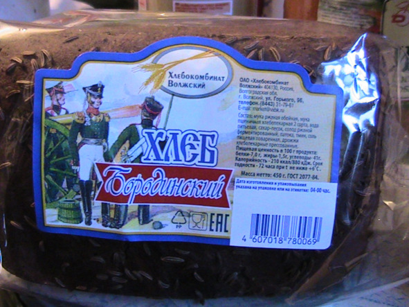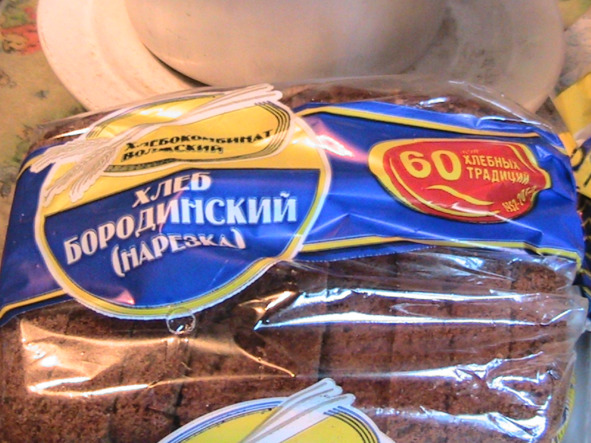 ««Бородинский в виде «нарезки». У нас «бородинский» продаётся двух видов: целой сайкой и в виде «нарезки». Оба вида хлеба производят в городе Волжский».