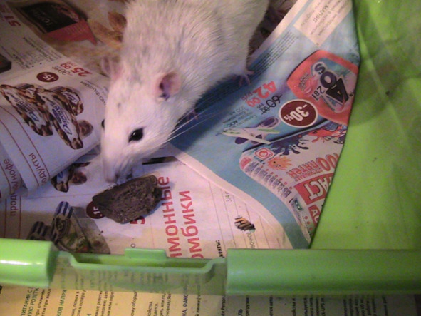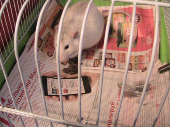«Так старательно жуёт! Вот пример для диетологии: есть медленно и тщательно пережёвывая, чтобы насытиться меньшим количеством! Откуда мой питомец „КРЫС“ – это знает?! Или… На уровне рефлекса: природного. В любом случае-„ЖИВОЙ ПРИМЕР“ правильного медленного и ТЩАТЕЛЬНОГО пережёвывания пищи!»