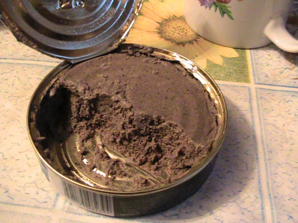 Если бы ему положил половину всей банки паштета, наверное он бы..ВСЁ СЪЕЛ! Да и… ЭТО-ТЕ Же «ШПРОТЫ»! СТО процентные ШПРОТЫ! Но без излишних жиров, которых там аж 32 грамм на 100 грамм продукта! А у «шпротного паштета» – всего 17! Плюс шпроты – ВСЕГДА в банке – «в масле»! Ведь «шпроты», может ты не знаешь, -это СПОСОБ ПРИГОТОВЛЕНИЯ, а не название вида рыбы»! берём банку «Шпроты в масле». Состав-в основном «зашифрован»! Сложно понять, из чего шпроты, ИЗ КАКОЙ конкретно -рыбы: «Состав: копчёная рыба…» Либо: «Состав: копчёная салака..» В лучшем случае подробно и..ПОНЯТНО написано: " Консервы из копчёной рыбы, стерилизованные. Состав: копчёная килька или салака…» Или напишут даже ПОЛНОСТЬЮ: " Состав: рыба копчёная (балтийская килька или салака)…» Вообщем «шпроты», как и наш «шпротный паштет»: из копчёной кильки или салаки»! Убираем-лишь «ЖИРНУЮ разницу в масле» и..В МНОГОКРАТНОЙ СТОИМОСТИ!!!!