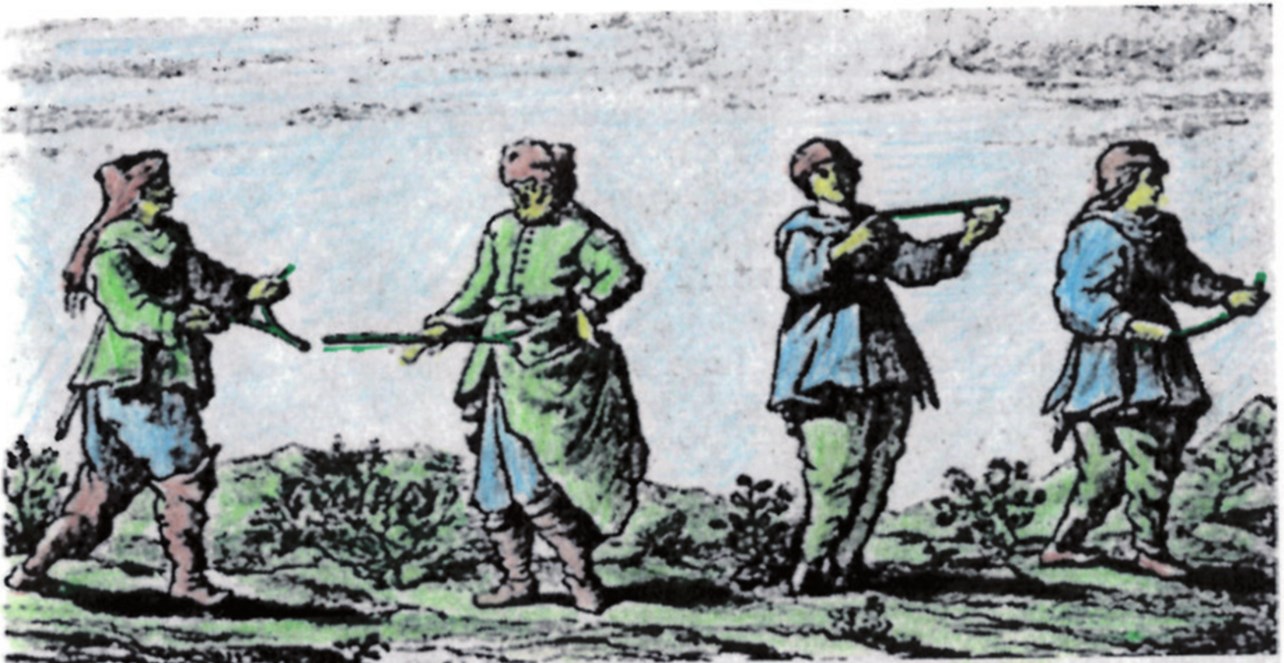 На рис. 2 (гравюре) показаны различные способы удержания «лозы» при поиске полезных ископаемых или водных жил.