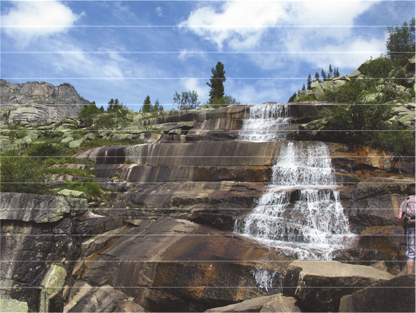 ГидрографияРечная сеть региона довольно густая, что обусловлено в первую очередь обилием осадков в большей части гумидных районов, являющихся истоками крупных рек. Енисей – крупнейшая река, пересекающая Саяны в меридиональном направлении. Все крупные реки и почти все их притоки берут начало в верхних горных поясах, где отличаются стремительным течением, обилием перекатов и небольших водопадов (рис. 3). В южной и восточной частях региона имеется множество небольших озер.