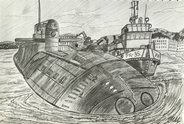 – С торца! Сказал Колька. Пошли на хвост, где винты! К хвосту лодка сужалась, и от борта до воды было всего полметра!