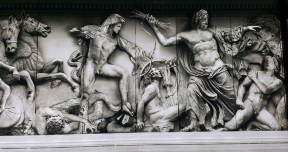 Барсуков был профаном в археологии и в музейном деле тоже, поэтому не знал, что никакого храма немцы не перевозили. Пергамский алтарь, предназначавшийся для религиозных церемоний под открытым небом, был полностью руинирован. Уцелели лишь отдельные мраморные плиты с рельефами, изображавшими сцены битвы богов с титанами. Плиты составляли фриз, шедший вдоль цоколя. Вот эти-то плиты в количестве 115 штук и вывезли немцы в Германию, причём с разрешения султана, выплатив при этом некоторую сумму.