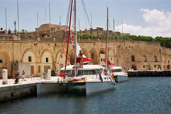 День тратим на оформление формальностей и день на тестирование катов на воде под парусами, переселяемся в каты, но работы еще продолжаются. Начинаю изучать прогноз и планировать переход сразу до Мальты, т.к. идти через о. Лампедуза уже не получается по времени, а хотели – задержка в 7—8 дней это очень много, надо гнать лошадей. На корабле сразу суета и круговерть и мне надо с этим как-то справляться. Начинаю командовать, напоминая команде, что они пересекли линию кормы и находятся в моём полном подчинении. Первые дни очень сложно. Няне справится с тремя детьми малыми очень сложно. А Бабушку мы должны подхватить только на Сицилии. Няня родом казачка и чувствует себя уверенно, делает все быстро, готовит хорошо.