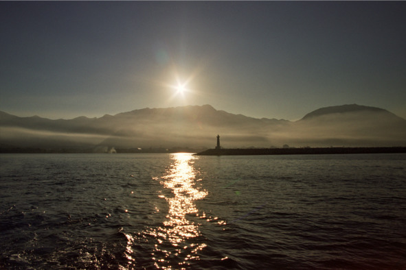 6 утра. Мы со старшим матросом и основным моим помощником – няней/коком, уже встали и начинаем готовиться к отходу. Сильный туман и роса. Палуба мокрая. Солнце еще не вышло из-за гор. Первые лучи подсвечивают вершины и слои тумана – очень красиво, обалденно. Беру полотенце и показываю пример, забывшим службу матросам, начинаю насухо протирать палубу, рубку, панорамное остекление рубки. Матросы молча втягиваются в работу, а я иду заполнять СЖ, включать приборы. Дизеля не запускаю – не хочу никого будить.