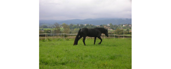 Да, у нас фриз. Роня, мерин 4-х лет. Ирон из Фрисляндии, где он занял 2-е место на морфологических соревнованиях среди молодняка. В Голландии это серьёзный титул, от балды не выдают. Он у нас меньше месяца, заезжен под седло с уздечкой на мундштуке. Пробовали ездить – он знает только самые элементарные вещи – смена аллюров, остановки. Характер спокойный, очень дружелюбный, любопытный, общительный. Ничего не боится! А если и пугается, то в разумных пределах. Мы прошли ветосмотр – никаких проблем не обнаружили. Есть размет – расковали.