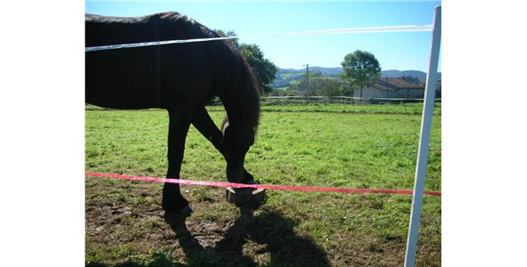 А! Ещё… Вчера электропастух передвигали, ему очень интересно было. Но мы побоялись, что он выскочит и надели недоуздок, дочка держала. Так такой протест был, ко мне рвался!