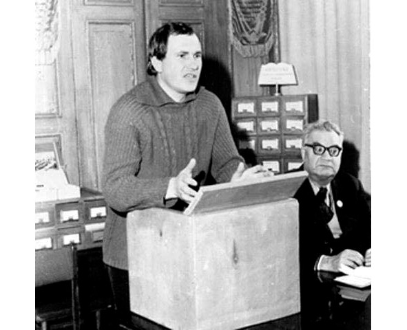 В те дни я уже работал сборщиком на тракторном заводе, жил в общежитии, и все свое свободное время проводил в читальном зале заводской библиотеки. Какая замечательная читалка была у завода! Богатейшая, многолюдная, с приветливыми, влюбленными в свое дело библиотекарями, и работала тогда аж до десяти часов вечера. Прямо из цеха, заканчивалась смена в четыре часа дня, я шел в нее, читал, писал контрольные работы и рассказы. Первая моя книга написана там. Библиотекари, думается, быстро поняли, чем я дышу, и однажды одна из них сказала мне, что при читалке работает заводская литературная студия, и спросила – не желаю ли я пойти туда. Как вы понимаете, я желал да еще как желал! Она повела меня в комнату, где я увидел, кого вы думаете?.. Я увидел Гельфандбейна.