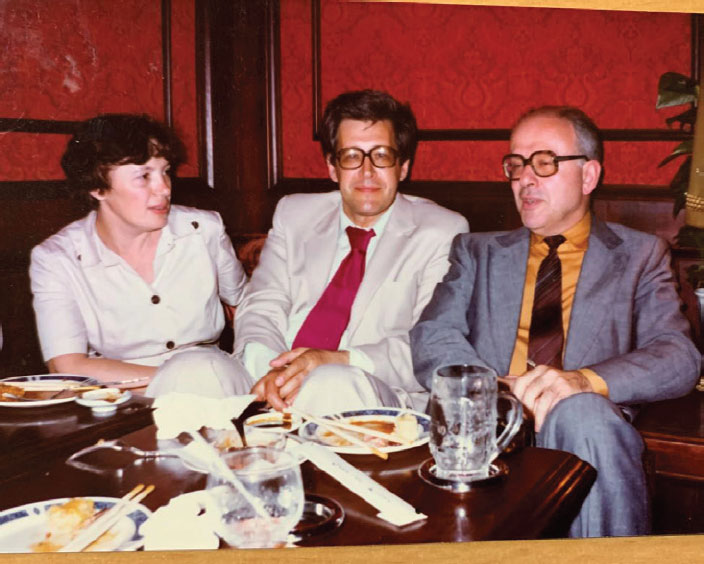 Торжественный приём по случаю избрания новых членов в орг. Комитет Международного Симпозиума по генетике промышленных микроорганизмов, 1982 год. Слева Хильда Шремп, ФРГ, справа Наташа Ломовская, СССР. Фамилию мужчины в центре вспомнить не могу.