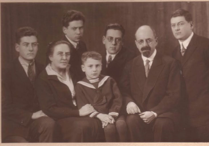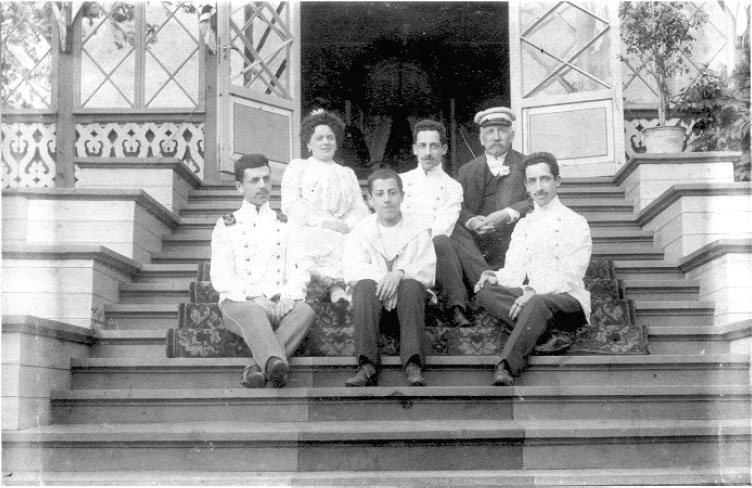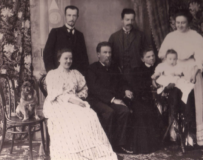 Борис Матвеевич Шаскольский с женой Евгенией Михайловной и сыновьями (слева направо) Владимиром, Михаилом, Павлом и Петром на даче в Выборге.[3]