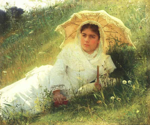 Крамской И.Н. Женщина под зонтиком (В траве. Полдень) 1883.