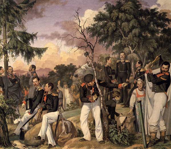 Федотов П.А. Бивуак лейб-гвардии гренадерского полка (установка офицерской палатки) 1843